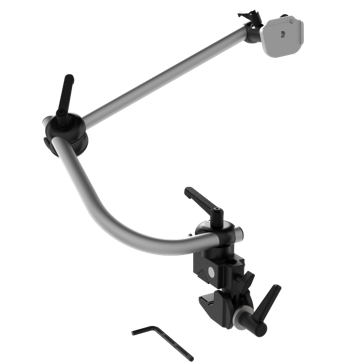Tisch-Stativsystem montiert auf SuperKlemme mit QuickShift-Bediensystem und 2x Rohren, stufenlos 3D einstellbar.