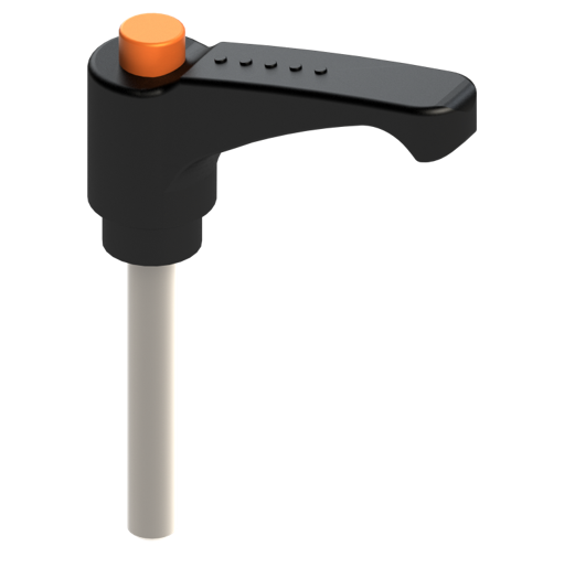 Klemmhebel mit orangenem Rastknopf.